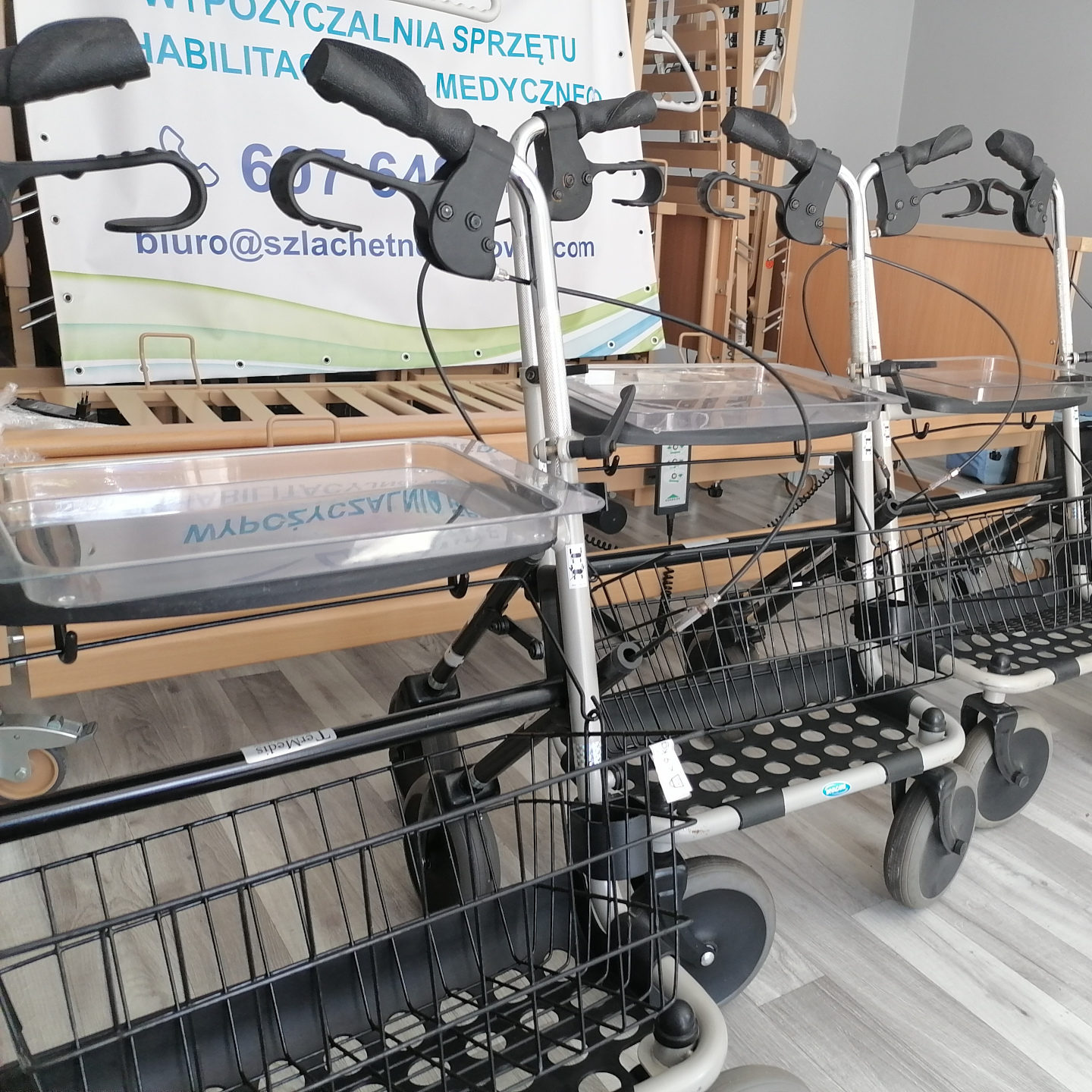 Balkonik rehabilitacyjny czterokołowy, chodzik, rollator + Koszyk + Tacka